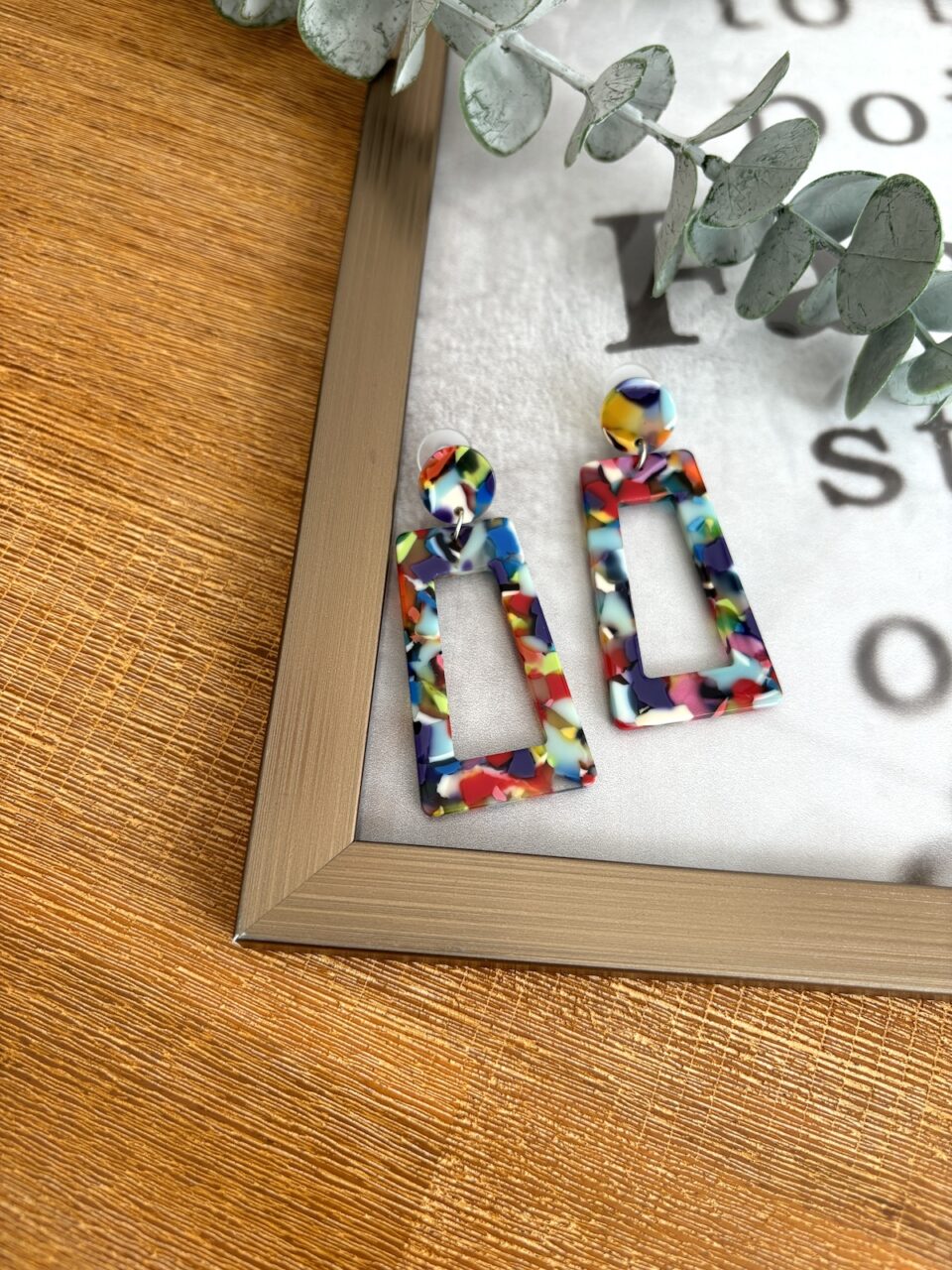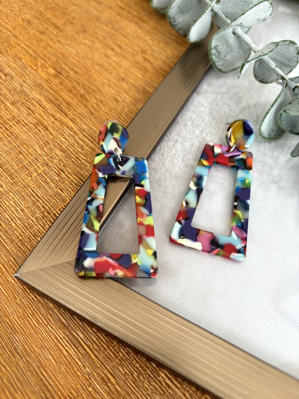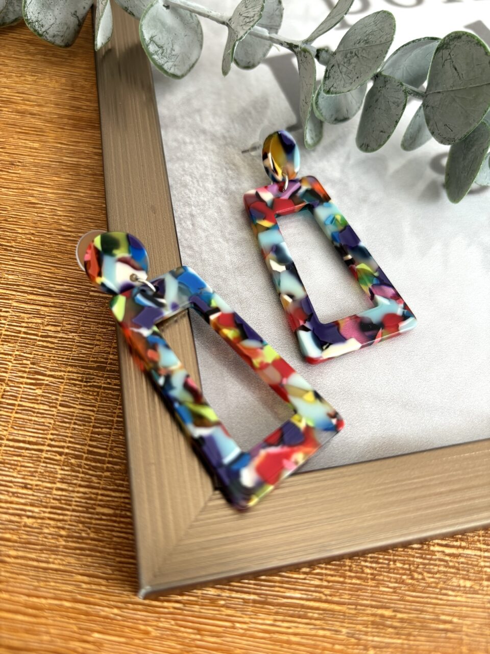 Rechteckiger Ohrstecker aus Acryl.
